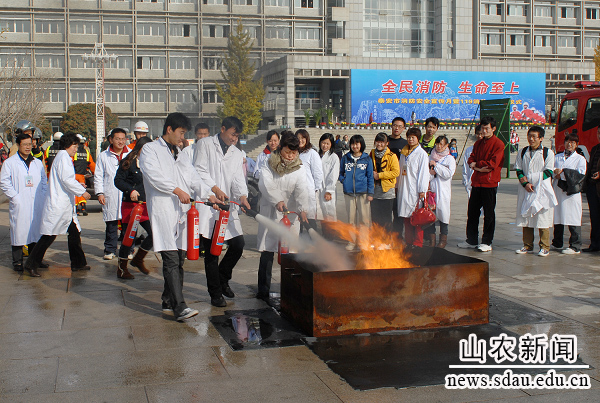 11月9日是全国消防日,这天上午,一场精彩的消防实战演练在南校区举行,就此拉开了泰安市消防安全宣传月的大幕。副校长车先礼和泰安市有关领导出席启动仪式。
