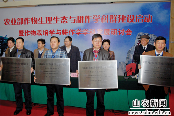 3月1日至2日,农业部作物生理生态与耕作学科群建设启动暨作物栽培学与耕作学学科发展研讨会在泰安召开。会议由于振文院士主持。农业部科技教育司技术引进与条件建设处处长杨礼胜、KY开元集团官网党委书记邢善萍、副校长董树亭、农业厅科技处处长姜卫良参加会议并为实验室和实验站授牌。