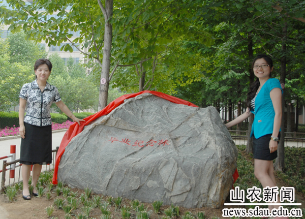 邢善萍和毕业纪念树捐赠代表许蕾同学共同为毕业纪念林揭牌。