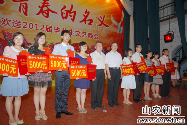 文艺演出中间还颁发了第十届“校长奖学金”,20名优秀毕业生每人获得5000元奖励。毕业生代表深情表达了对学校老师的感激之情,并表示今后将在新的起点上锐意进取,全面发展,努力成长为可堪大用、能负重任的栋梁之材,为母校增光添彩。