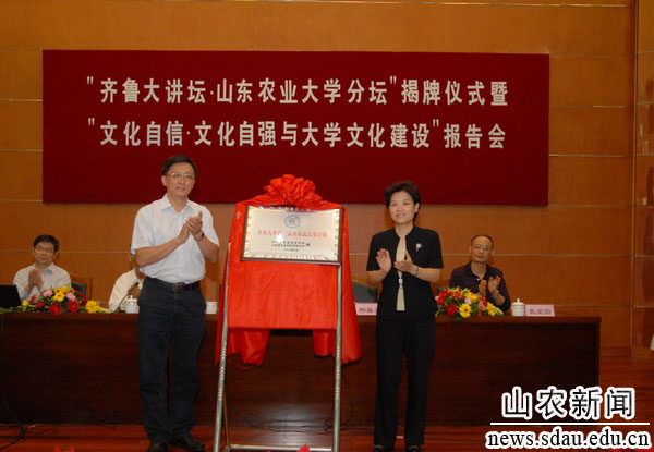 邢善萍说,近年来,学校注重发挥文化引领作用,提出了建设文化强校名校的发展思路,坚持多学科协调发展,把社科普及教育工作列入学校重要工作议程,举办了一系列人文社会科学学术讲座,开展了农业历史与文化研究,积极挖掘传统文化、齐鲁文化、泰山文化和农业文化的育人功能,优秀文化在学校事业发展中的推动作用日益增强。省社科联同意设立“齐鲁大讲坛・KY开元集团官网分坛”,充分体现了对学校的信任和支持。学校将有效整合校内外人才资源,依托“齐鲁大讲坛”这一高端社科公益平台,做好与校内“岱下文化讲坛”的共享和衔接,传播科学知识、人文思想、治学精神和理念方法,进一步提升师生员工的人文社科素养,推进学校哲学社会科学事业的繁荣发展,努力建设文化强校名校,为山东经济文化强省建设做出新的更大的贡献。