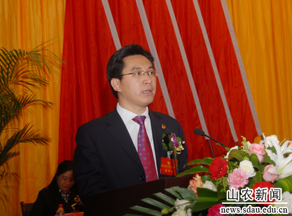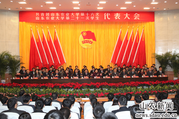学校领导邢善萍、温孚江、张敬和、孙永华、张宪省、董新胜、车先礼、朱莉、嵇景涛出席会议,共青团山东省委副书记陈必昌、共青团山东省委学校部部长郑思洁出席会议。兄弟高校团委代表山东大学团委书记马晓琳,共青团泰安市委书记陈晓娜,群众团体代表校工会主席苑来学,先后致辞,祝贺大会召开。