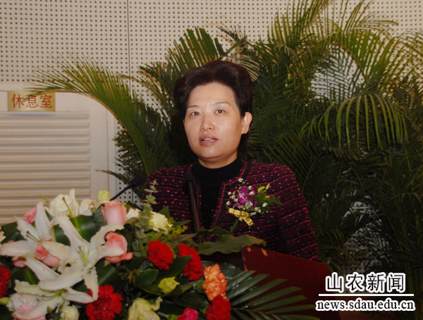 邢善萍在会上讲话,代表学校党委对双代会的召开表示热烈祝贺。