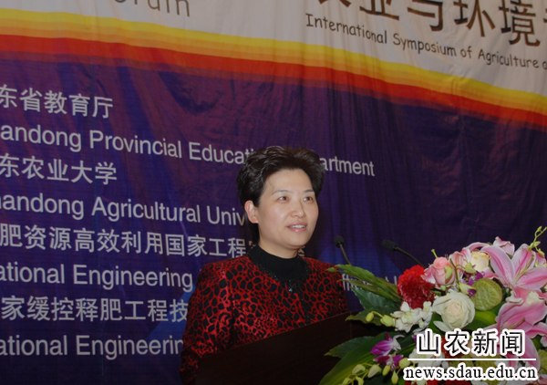 校党委常委、副校长张宪省教授主持开幕式。山东省教育厅发来贺信对专题论坛的召开表示祝贺。校党委书记邢善萍在开幕式上致辞,简要介绍山东农大的办学情况,对与会专家表示欢迎。她在致辞中指出,本次论坛的主题――农业与环境,是当今世界的热点问题之一,关系科学发展,关系国计民生,关系子孙后代。中外专家学者齐聚泰山脚下,共同研讨这一专题具有重要的现实意义和长远意义。论坛在KY官网举行,充分体现了上级领导对KY官网的关心厚爱,体现了专家学者们对KY官网农业与环境领域研究的肯定和鼓励,也为KY官网教育和科技工作者提供了学习提高的平台。希望与会专家关心支持学校的发展,并对学校的建设和发展提出宝贵意见和建议。学校将以此为契机,大力加强人才队伍和科研平台建设,不断推进农业与环境研究的进步和创新,努力为生态文明建设和农业现代化建设做出新的贡献。