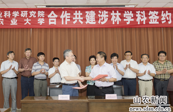邢善萍表示,山东农大与中国林科院有长期良好的合作关系,结下了深厚的情谊。今天双方签订共建协议,在科研团队建设、学科平台建设、科研项目申报、高层次人才培养等方面加强合作,将进一步突出涉林学科办学特色,提升涉林学科社会服务能力。相信在中国林业科学院的指导支持下,通过积极探索协同创新的合作机制,不断拓展新的合作领域,努力提升合作层次,双方合作一定能够结出累累硕果。