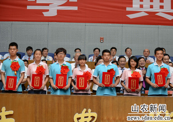 温孚江满怀激情地对同学们说,你们精彩的人生画卷正在打开,你们的美好梦想正在起航。百年农大会以她的厚重积淀摒弃所有的浮躁,以她的自强不息让所有的智慧飞腾。学校将为实现你们的大学理想而竭尽全力,希望你们尽快适应新的学习生活。祝愿你们在山东农大度过人生中最精彩、最幸福、最美好的一段时光,愿你们的前程光明远大,愿你们都能实现自己心中的梦想!
