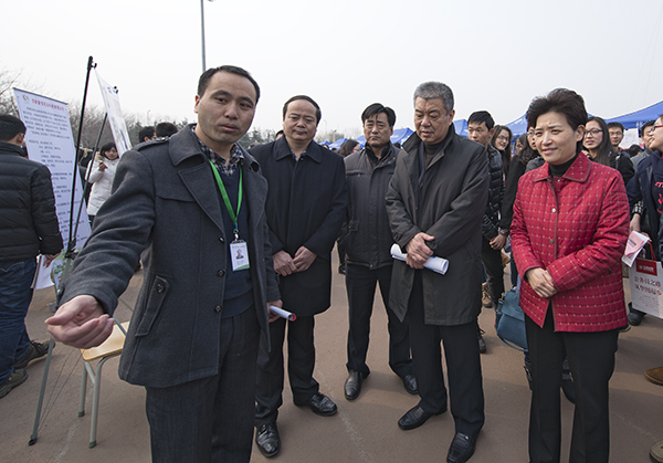 学校领导邢善萍、孙永华、张宪省、董新胜、车先礼、朱莉、高东升、嵇景涛、刘兴坦,省人力资源和社会保障厅高校毕业生就业处正处级调研员杨志晖、科长赵钦友,泰安市人力资源和社会保障局党委副书记、副局长刘增祥、人才交流服务中心主任卞峰德到招聘现场调研,指导就业市场的各项工作,与部分用人单位和毕业生亲切交流,了解毕业生就业形势。各学院、各部门负责人和广大业务教师也纷纷到会与用人单位进行洽谈,积极推荐毕业生就业,并就人才培养、专业设置、科技推广、校企合作等工作与用人单位进行深入沟通。