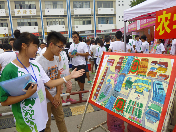 志愿者为学弟讲解“漫画地图”(农学院供稿)