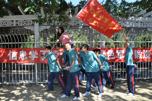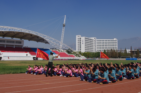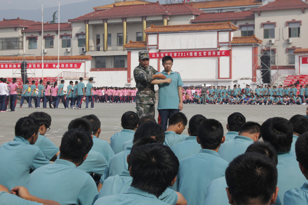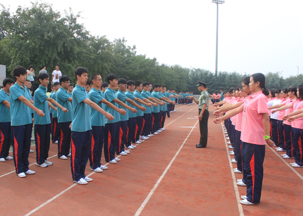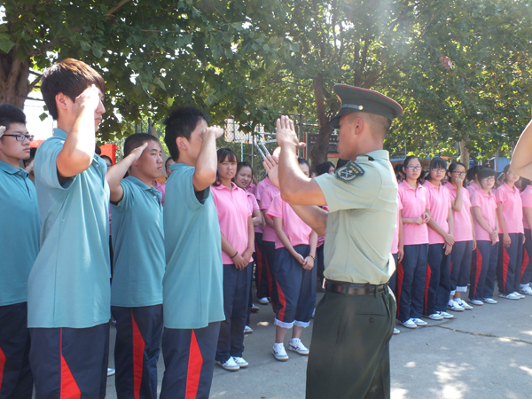教官手把手训练学员摆臂姿势(机电学院供稿
