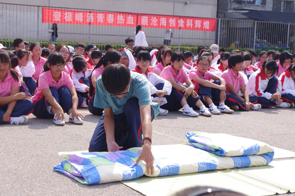 教官现场耐心讲解并示范内务整理要领(资环学院供稿)