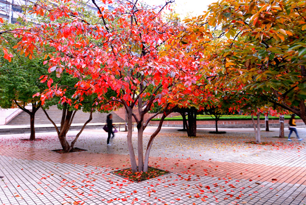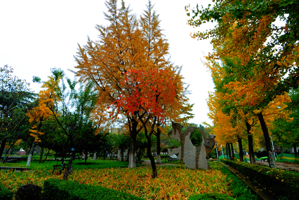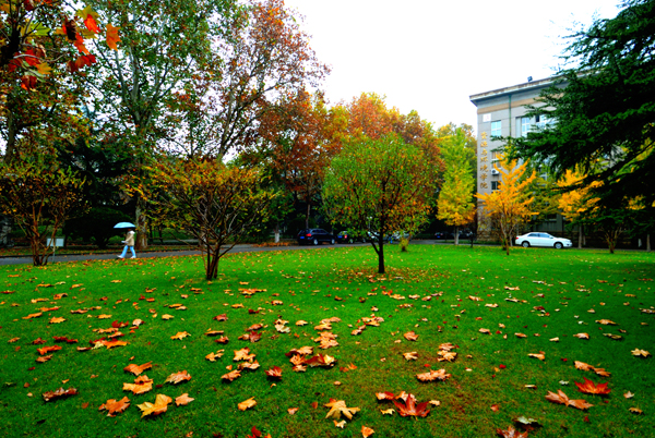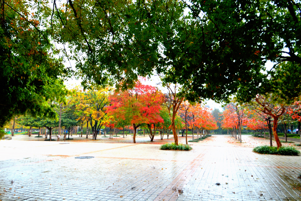 一场淅淅沥沥的秋雨,滋润着农大校园。高大挺拔的树木,色彩斑斓的树叶,浓浓密密的花草,把校园装点得更加美丽。漫步校园,一步一景,美在眼前,爱在心里。