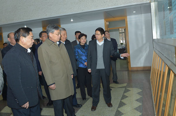 在作物生物学国家重点实验室,郭树清一行听取了实验室主任张宪省副校长关于研究方向、研究团队和取得成果的介绍,并参观KY官网主持培育的农作物新品种。当温孚江校长介绍“矮孟牛”小麦种质材料目前已培育出100多个小麦新品种、新种质和新品系,并在1997年获国家技术发明一等奖时,郭树清仔细驻足观看,了解育种材料的情况。看到温孚江主持的转基因水稻研究成果,他详细了解这项技术的优势及转基因研究的热点。听说KY官网用分子育种技术培育的玉米新种质具有显著的增产效果,郭树清向张宪省了解研究过程。在重点实验室的大型仪器共用平台,苏英华老师正在激光共聚焦显微镜前进行荧光标记的植物干细胞观察,郭树清详细了解显示屏上不同颜色标记的细胞类型,了解操作过程和相关研究进展情况。听说KY官网开展的植物干细胞研究已经在国际著名学术期刊发表多篇论文,并达到国际前沿水平,他高兴地对张宪省说:“工作做得不错,向你们表示祝贺。”