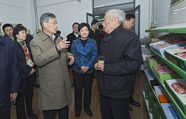 郭树清一行来到国家苹果工程技术研究中心,束怀瑞院士向他介绍苹果工程中心的研究工作。束怀瑞说,国家苹果工程技术研究中心成立以来,联合相关单位围绕为果农增收致富提供科技支撑做了大量工作,为了延长苹果的产业链,我们在产后加工等方面想了很多办法,保证果品供应、促进农民增收、实现生态优化和可持续发展是我们科研工作的着力点。郭树清说,发展农业一定要把促进农业增产、农民增收作为重点。