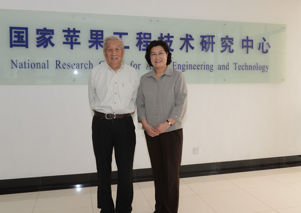 在国家苹果工程技术研究中心,束怀瑞院士热情地欢迎吴翠云,两人亲切合影留念。束怀瑞说,国家苹果工程技术研究中心近几年在苹果产后加工、延长苹果的产业链方面做了许多探索,也取得了很好的成绩,这样既让果农多增加些收入,也能实现生态优化和可持续发展。束怀瑞详细向吴翠云介绍中国尤其是山东苹果的种植面积、苹果品质、市场行情等详细情况,为种植面积加大导致的价格低迷寻找出路。吴翠云说,我们束院士是八十多岁的老人了,还这么关心产业发展、农民增收,令我非常感动。园艺学院教授、九三学社社员彭福田向吴翠云介绍自己在桃方面所取得的成绩,吴翠云勉励彭福田潜心研究,充分发挥党外人士在学校建设发展中的作用。