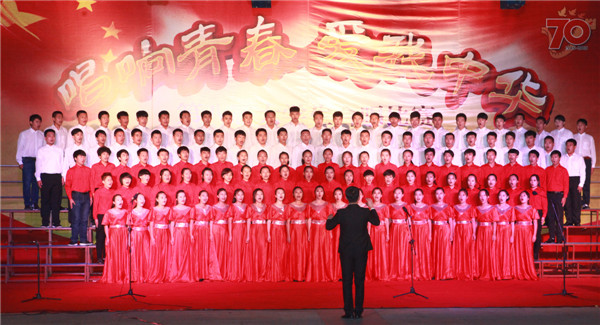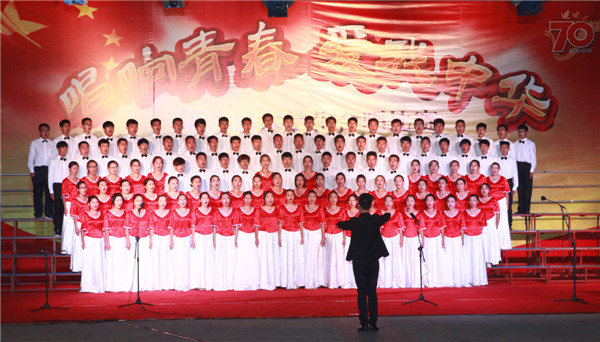 10月9日晚,南校综合楼广场灯光璀璨、歌声悠扬,学校“唱响青春・爱我中华”第八届大学生合唱比赛在这里举行。学校领导徐剑波、车先礼、朱莉、高东升,各学院、各部门负责人,全体学生工作人员与2015级新生欢聚一堂,共同观看了比赛。