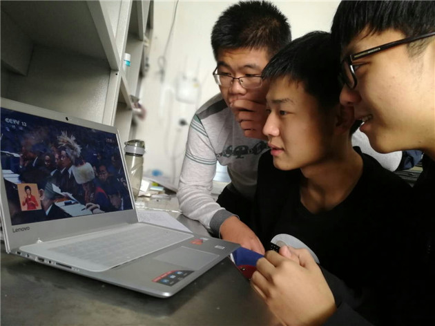 水土学院2014级水利水电工程2班班长刘洪辰与他的小伙伴一起围坐在电脑前收看了大会盛况。他说,大家都很激动、很振奋,我们成长在新时代是何其之幸。在这个新时代里,只要我们青年有理想、有追求、有担当,实现中华民族的伟大复兴就有源源不断的青春力量。我们要在努力学习中练就过硬本领,在创新创业中增长智慧才干,把自己的青春融入中华民族伟大复兴的中国梦,书写无愧于时代、无愧于历史的精彩篇章。