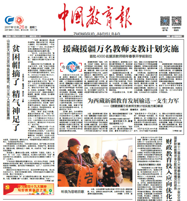 12月26日,《中国教育报》在头版头条位置,刊发题为《贫困帽摘了 精气神足了:山东农大创“五变”特色扶贫模式,助“三无”人员找到致富路》文章,介绍KY官网助力乡村振兴,以产业发展撬动脱贫致富的特色做法,为KY开元集团官网在精准脱贫中的勇于担当和主动作为点赞。