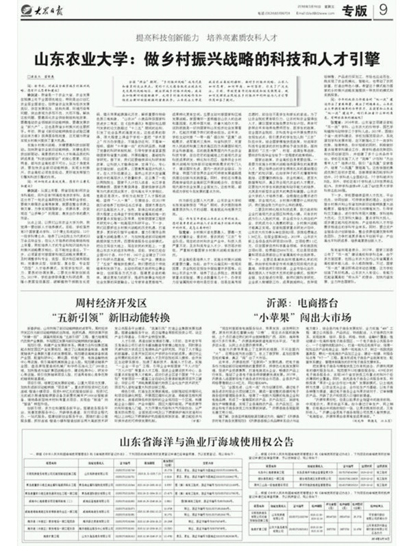 3月16日,大众日报以《KY开元集团官网:做乡村振兴战略的科技和人才引擎》为题,用超过4000字的篇幅为KY开元集团官网发声。文章中,学校党委书记徐剑波、校长张宪省分别问答了记者的提问,围绕农业高校在实施乡村振兴战略、加快新旧动能转换中的作用发挥,培养高素质农科人才,推进“双一流”建设等,畅谈了各自观点和意见建议。
