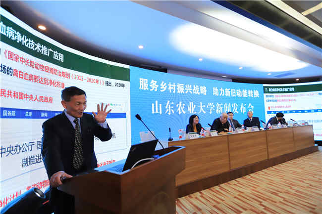 在科技成果发布环节,果树专家陈学森教授发布了他的最新成果“苹果和梨新品种优质高效育种和生产技术及应用”,并回答了中央电视台记者现场提问。禽病专家崔治中教授发布了“禽病毒性肿瘤病综合防控技术及推广应用成果”,并回答了山东电视台记者的提问。