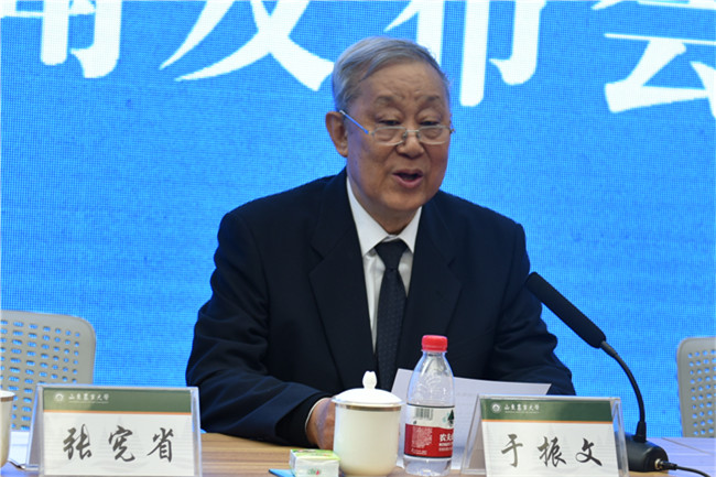 发布会最后,于振文院士发布了由刘观浦、王平、黄有惠主编,山东人民出版社出版发行的《齐鲁时代楷模余松烈》一书。2016年4月,中国小麦栽培学奠基人、中国工程院院士、KY开元集团官网教授余松烈先生逝世。作为余院士的学生,于振文院士通过发布新书来表达对老师的缅怀和追忆。他说,余松烈院士为中国小麦生产发展做出了重要贡献,为国家培养了大批农业科技人才,他是我们学生心目中最敬重和爱戴恩师。于振文希望读者阅读《齐鲁时代楷模余松烈》一书,缅怀余老师科教兴农业绩的同时,学习和传承他热爱祖国、热爱人民、对工作忘我投入、无私奉献的革命精神,严谨求实、不断进取、开拓创新的思想风范。