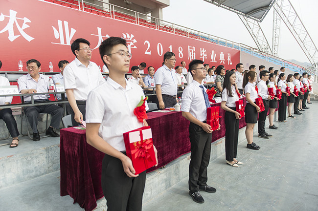 毕业生代表朗诵了毕业颂歌《山农恋歌》,表达了全体毕业生对母校的深深眷恋之情,对老师们辛勤培育的感恩之情。毕业典礼结束时,全体毕业生举起右手郑重宣誓:铭记母校教诲,践行登高必自,坚定理想信念,担当历史重任,锤炼高尚品格,勇于创新创造,为实现中国梦而不懈奋斗,在新时代的新征程中绽放青春光芒!