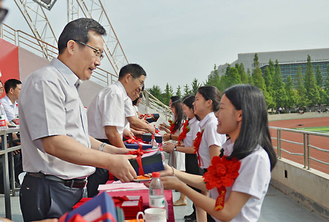 在毕业典礼上,学校领导向毕业生代表颁发毕业证书、学位证书,为获奖同学颁发荣誉证书,并向他们表示祝贺。