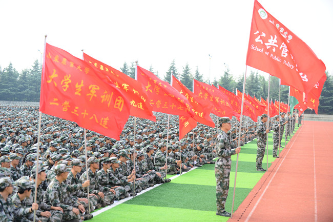 开学典礼上,举行了军训汇报表演。军训学员们精神饱满、整齐昂扬地正步走过主席台接受检阅,展示军训成果。据了解,为鼓励先进和深化军训成果,学校决定授予29名教官“优秀教官”荣誉称号,授予25支连队“先进连队”称号,授予377名同学“优秀学员”称号。