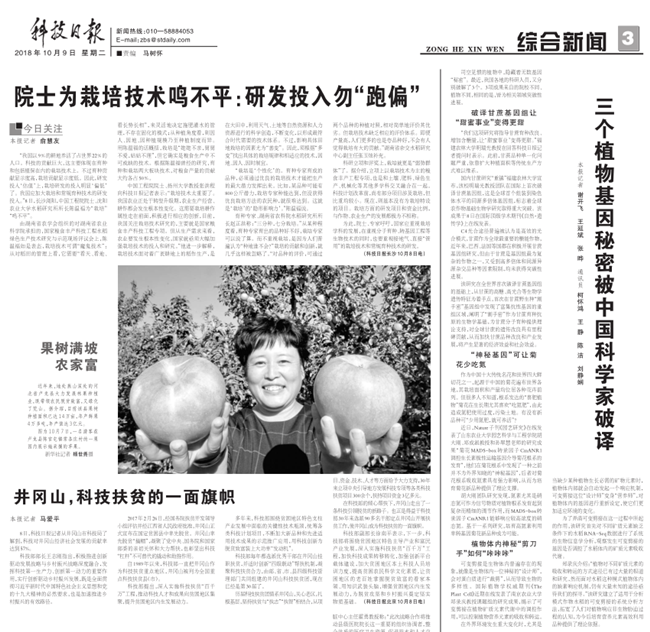 10月9日,科技日报刊发题为《三个植物基因秘密被中国科学家破译》文章,报道国内植物基因研究领域最新科研成果。KY官网园艺学院胡大刚团队科研成果位列其中。