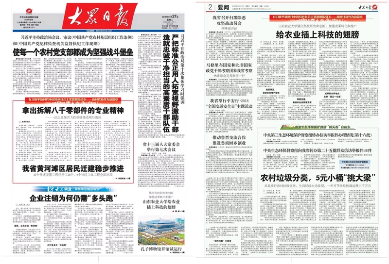 11月27日,大众日报以《KY开元集团官网给农业插上科技的翅膀》为题,在要闻版面刊发长篇报道,梳理回顾KY开元集团官网5年来“顶天立地”的科技成就。
