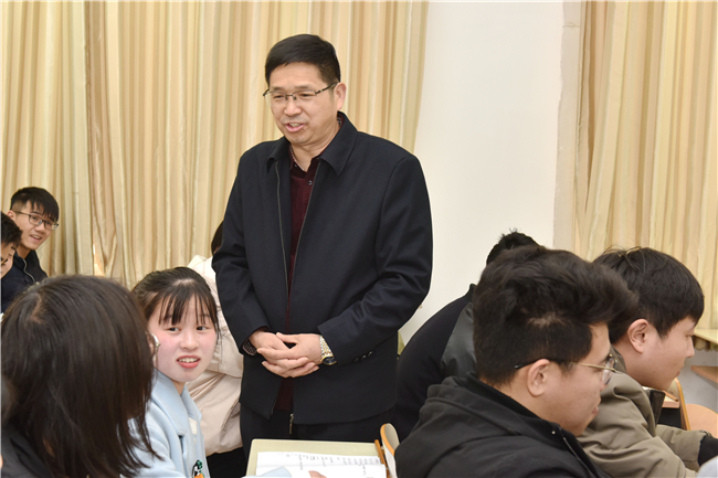 下午2点55分,张宪省静静地坐在了S119教室后排。讲台上,园艺学院教师王晓云正在讲授《蔬菜概论》课程。下课后,他仔细询问同学们有关课程和学习的情况,了解在学习中遇到的问题,勉励大家珍惜青春年华,在该奋斗的年纪努力拼搏进取。聆听校长的殷殷嘱托,同学们报以热烈的掌声,表示一定要努力学习,不辜负学校和家长的期望。