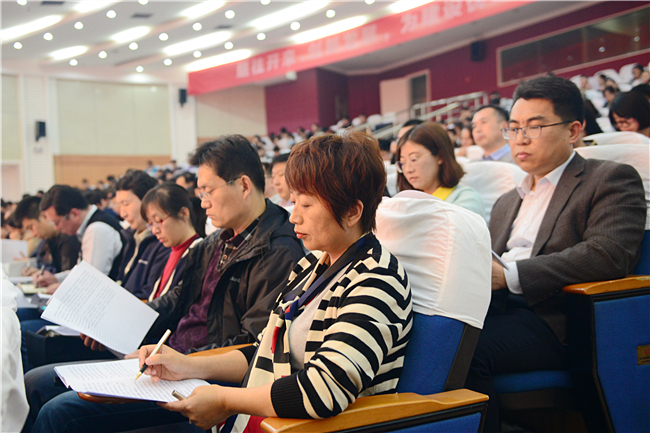 党委副书记朱莉主持会议。校领导杨天梅、高东升、嵇景涛、张明志、吴衍涛、司金贵出席会议。学校处级干部、学生辅导员、各基层党支部书记、各学院系主任、马克思主义学院教师以及部分教师代表等参加会议。