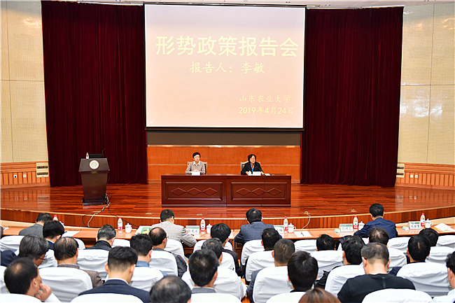 4月24日,学校举办形势政策报告会,邀请中国浦东干部学院“教学名师”李敏教授来校,作题为《坚持底线思维,防范化解风险》的专题报告。校长张宪省会见李敏并座谈,围绕预防办学发展中的重大风险等进行深入交流。