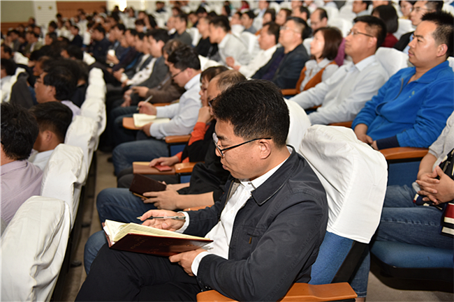在家学校领导、全体处级干部、各基层党支部书记、各学院办公室主任、各部门负责综合事务人员、本科生及研究生辅导员参加报告会。党委副书记朱莉主持报告会。