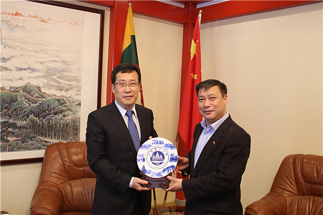 5月17日,正在立陶宛访问的党委书记徐剑波一行应邀做客中国驻立陶宛大使馆,拜会特命全权大使申知非并座谈交流。