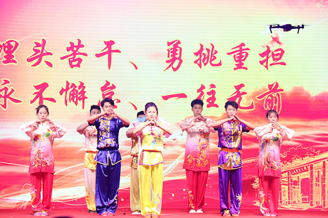 情景剧《寻根山农》通过演绎老校友回访母校,追忆山农发展历程,讲述农大人的奋斗历史,立体生动地展示了农大深厚的文化底蕴与丰硕的办学成果和家国情怀代代传的使命与担当。曾获世界太极剑锦标赛冠军的山农学子带来的武术《山农骄傲》彰显中华武术魅力,体现青年学子质朴厚德、实干奋进的精神;歌舞《泰山挑山工》赞扬了挑山工埋头苦干、勇挑重担、永不懈怠、一往无前的精神特质;诗朗诵《山农进行曲》由农大教师创作,吹响了砥砺奋进,勇做新时代农大人的号角。歌曲《相信梦想》、《奉献》、《我们都是追梦人》,舞蹈《繁花似锦》、歌曲《我们的新时代》赞美了祖国繁荣富强,激励农大学子敢于有梦勇于追梦,勤于圆梦,做新时代的追梦人。