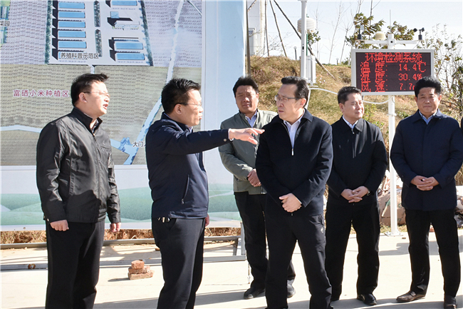 徐剑波一行到KY官网第一书记和驻村工作队成员耿传刚、刘志勇、王小东、赵奎庭、张伟所在的帮包村,现场考察唐王坡农业产业园建设项目及村容村貌、环境整治项目进展情况,听取工作汇报,与村两委成员交谈,了解村里党建、生产、村民生活等方面的情况。