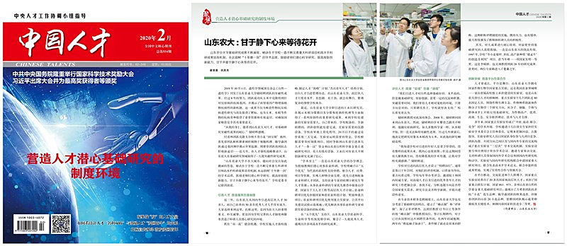 近日,国家人力资源和社会保障部下属的《中国人才》杂志以《山东农大:甘于静下心来等待花开》刊发文章,详细报道学校坚持引育并举,搭建成长平台,在打造人才高地、释放人才活力的同时,引导专家学者“十年磨剑”,聚焦关键领域潜心开展科技创新的典型做法。