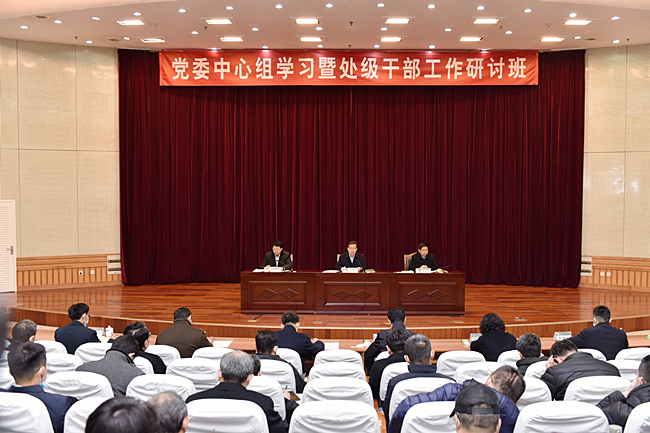 2月28日,学校举办党委中心组学习暨处级干部工作研讨班,党委书记徐剑波出席会议并讲话,以“把握新阶段,贯彻新理念,构建新格局,开启全面建设高水平大学新征程”为主题,分析学校发展所必须正视的历史方位,解读学校发展所必须坚持的根本原则,阐释学校发展所必须做出的战略选择,要求全校师生发扬孺子牛拓荒牛老黄牛精神,弘扬“十年磨剑”山农品质,以全面建设高水平大学的优异成绩迎接中国共产党成立100周年。校长张宪省对学校2020年工作进行总结梳理,对做好2021年重点工作进行安排部署。