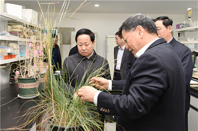 李希信强调,要强化育种基础研究,持续加大实验室建设,特别是要发挥好作物生物学国家重点实验室的引领作用,努力突破制约农业产业发展的“卡脖子”技术关键难题,为山东省现代种业创新作出更大贡献,为维护国家粮食安全勇立新功。他表示,下一步,将与山东农大共同策划好我省现代种业创新发展的实施路径,为省“十四五”种业发展谋篇布局,同时也将加大对全省农业科技创新支持力度,推动更多成果转化落地。