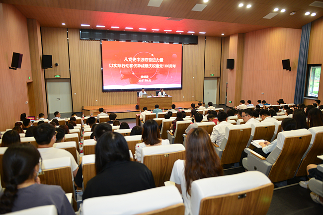经管学院报告厅里,气氛温馨热烈。徐剑波围绕“为什么要学习党史、从党史中学习什么、如何学习好党史以及如何知行合一,把学习成效体现到立足岗位、争当先锋上来”等四个方面,深情回顾党的奋斗历史,深刻阐释学习党史的重大意义,同时对党员干部和青年师生提出希望和要求。