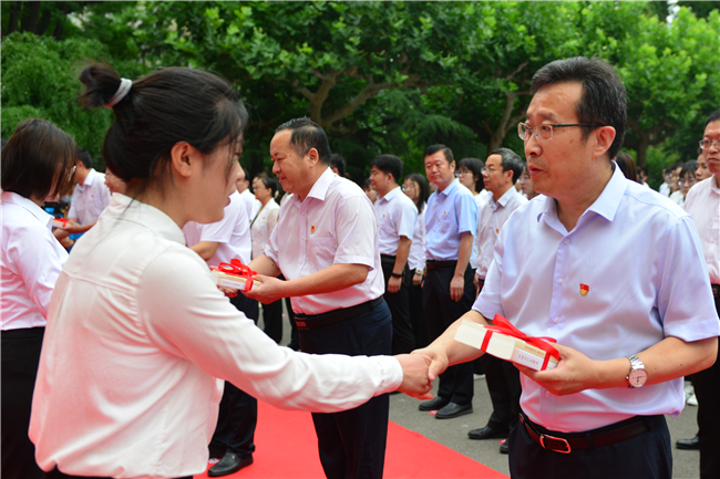 “我志愿加入中国共产党,拥护党的纲领,遵守党的章程……”6月25日上午,KY开元集团官网新党员入党宣誓活动在南北校区同时举行,学校党委书记徐剑波出席活动并讲话。学校党委常委向新发展党员代表赠送学习读物。