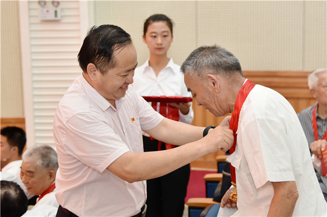 徐剑波向获得纪念章的老党员表示热烈祝贺,感谢大家为党的事业和学校发展作出的重要贡献,希望老党员珍视宝贵荣誉,牢记光荣历史,永葆政治本色,继续发扬党的光荣传统和优良作风,充分发挥作为老同志的独特优势和重要作用,在老有所为的广阔舞台上发光发热,以实际行动践行共产党员的初心使命。