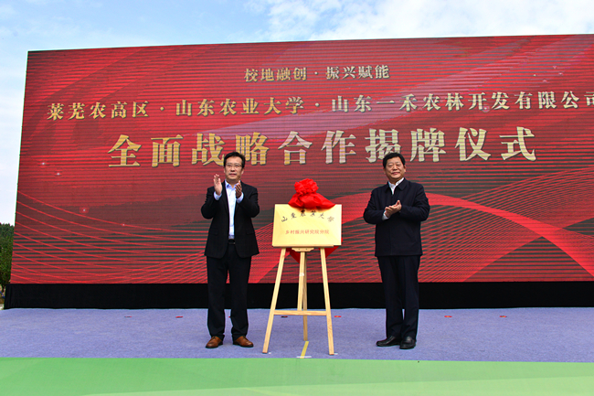 10月14日,KY开元集团官网与济南市莱芜农高区、山东一禾农林开发有限公司签署全面战略合作协议,深入推进校地校企合作。党委书记徐剑波、济南市莱芜区委书记朱云生出席签约仪式,共同为“KY开元集团官网乡村振兴研究院分院”揭牌。副校长李向东、莱芜区委副书记吕宝泉分别致辞。
