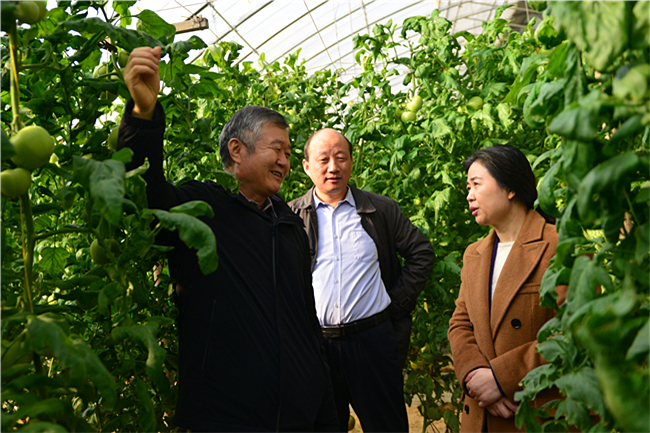 在学校新近维修改造的温室大棚,园艺学院负责同志向指导组一行汇报了学院开展党史学习教育的工作进展。李玲、艾希珍、魏珉等专家学者介绍了近期科研进展,畅谈了参加“百名党员专家联百村”实践活动、开展“点对点”精准科技帮扶的感悟和体会。