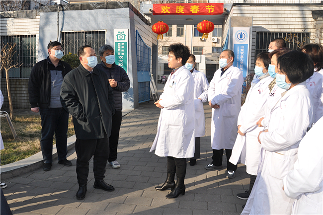 1月29日上午,副校长嵇景涛带队先后到岱宗校区110值班室、国重楼值班室、文理大楼配电室、校医院、校门值班室等,走访慰问一线工作人员,详细查看设施设备运转情况。