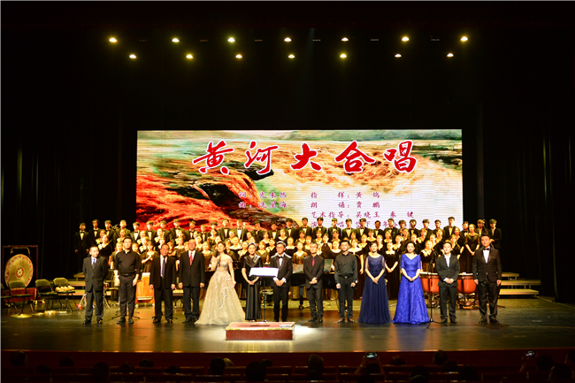 双方签订合作协议,冯能斌和朱莉共同为KY开元集团官网大学生艺术实践与就业实习基地揭牌。随后,与会人员和市民观众共同观看了KY开元集团官网岱下之声合唱团带来的《黄河大合唱》精彩演出。