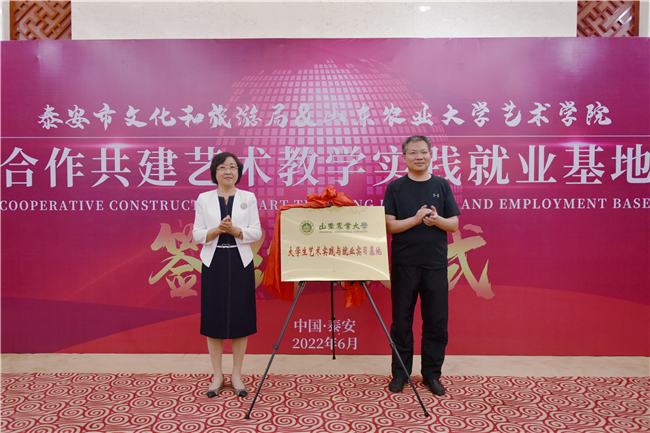 6月18日,学校艺术学院与泰安市文化和旅游局签订校地共建战略合作协议。双方将合作共建大学生艺术实践与就业实习基地,推动校地深度融合、共赢发展,为泰安的文旅事业、文化产业培养更多文化艺术人才。党委副书记朱莉、泰安市政府副市长冯能斌出席仪式。