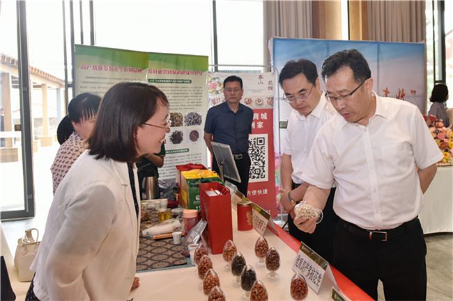 活动期间,服务团专家分别带着团队研发成果参加了“兴粮节粮庆丰收”——优质巾帼农产品展销洽谈会。她们的茶产品、花生新品种、蘑菇及加工产品、油桃新品种、生姜深加工产品等,吸引了现场参会人员驻足观看、品尝,并就下一步合作推广进行了交流。