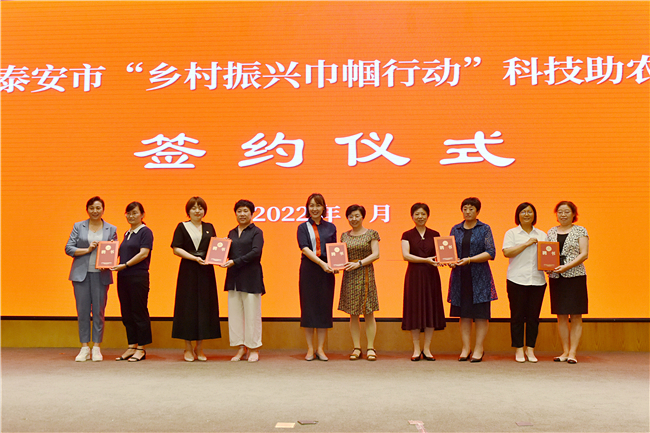 仪式上,于瑞波向KY开元集团官网“乡村振兴巾帼行动”科技助农专家服务团授旗,泰安市巾帼新型农业经营主体代表与KY开元集团官网专家代表签订合作协议并颁发聘书。KY官网专家代表、植保学院姜淑霞在发言时表示,将充分发挥自身优势,履行好科技助农专家使命,广泛联系泰安市广大巾帼企业家、巾帼科技致富带头人及农业经营主体,为她们施展才能、发挥作用提供科技支撑,帮助她们在乡村振兴、黄河流域生态保护和高质量发展中筑梦圆梦,在“乡村振兴巾帼行动”工作中发挥应有的智囊作用,展现当代中国妇女的风采。