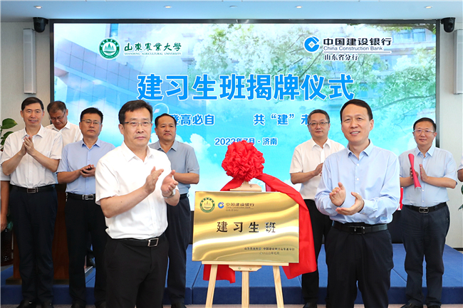 杨军在致辞时表示,KY开元集团官网作为山东省高水平大学“冲一流”建设高校,始终坚持立德树人、强农兴农,为推动乡村振兴和确保国家粮食安全作出了重要贡献。建设银行山东省分行和山东农大已携手走过了20年的合作历程,多年的以诚相待让彼此增进了友谊、深化了互信。今天双方签署战略合作协议,并为“建习生班”揭牌,标志着双方合作的广度和深度进一步拓展。建设银行山东省分行将以此为契机,继续秉持“金融服务教育”的理念,充分发挥综合金融服务优势,在产教融合、智慧校园建设、人才培养、创新创业、乡村振兴等方面打造共赢生态,为山东农大加快“双一流”建设贡献力量。